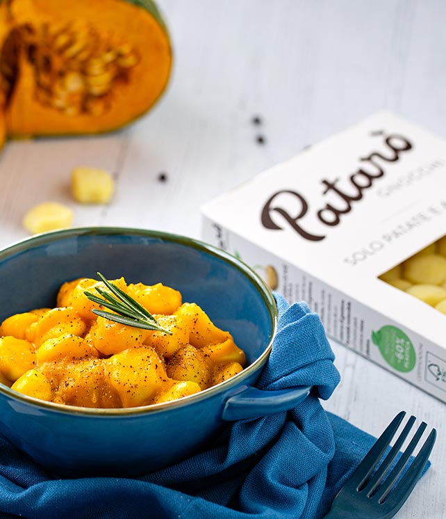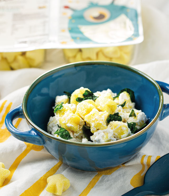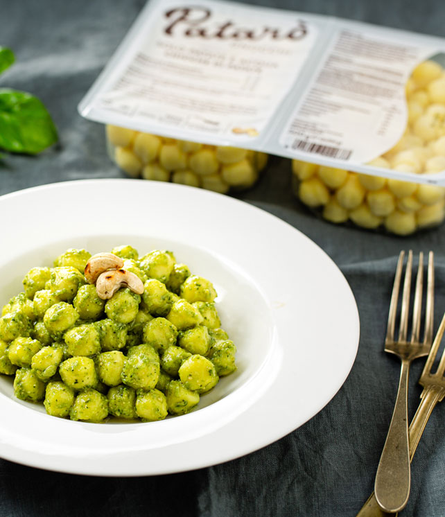 Gnocchi di solo patate e acqua con squacquerone, prosciutto crudo e rucola fresca