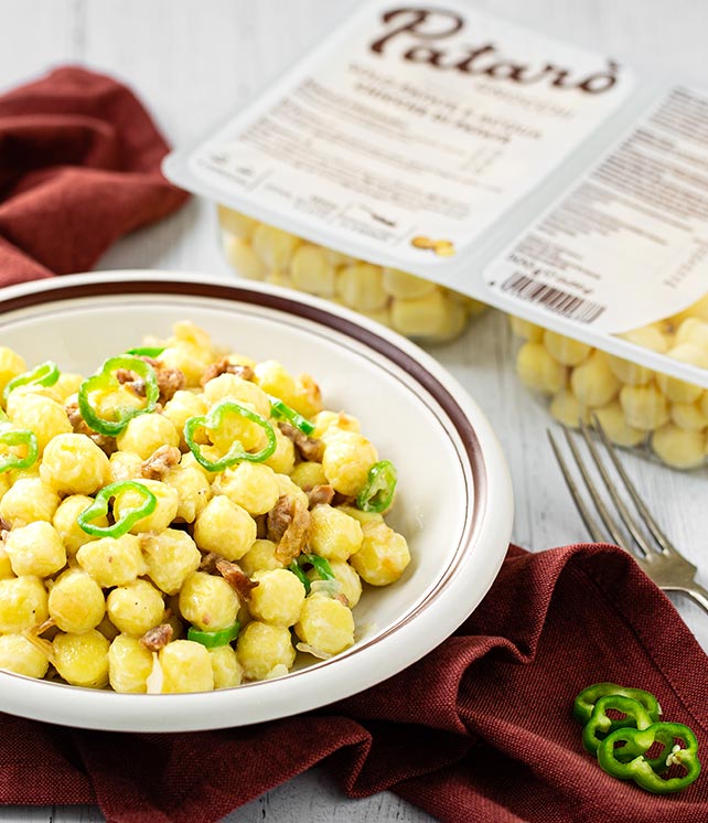 Chicche di solo patate e acqua con friggitelli e salsiccia